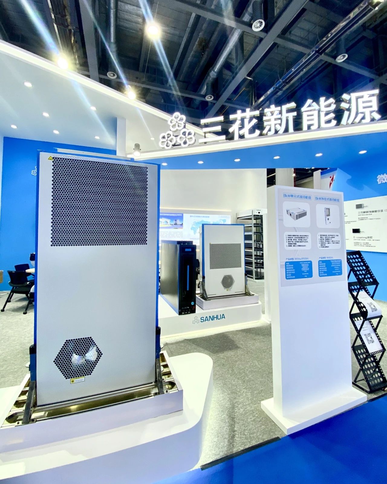 作為國內領先的儲能溫控解決方案和產品提供商,三花新能源在本次展會帶來了風冷機組、液冷機組、冷板及pack、集成模塊等代表性前沿產品,展現了公司優秀的產品技術迭代能力。